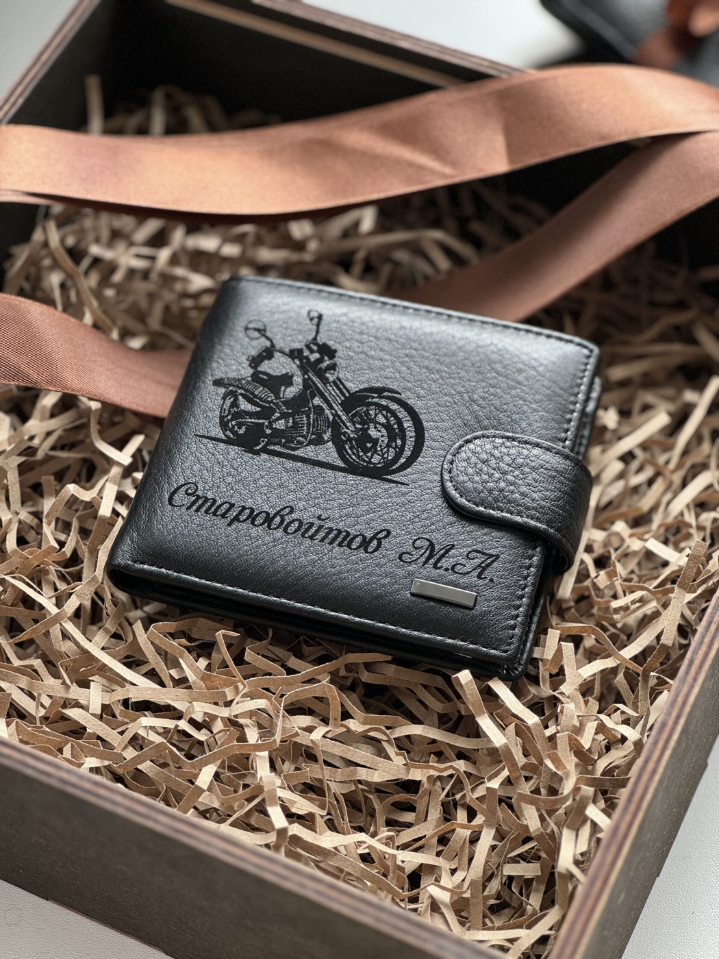 Изделие выполнено из мягкой натуральной кожи, закрывается на кнопку.
