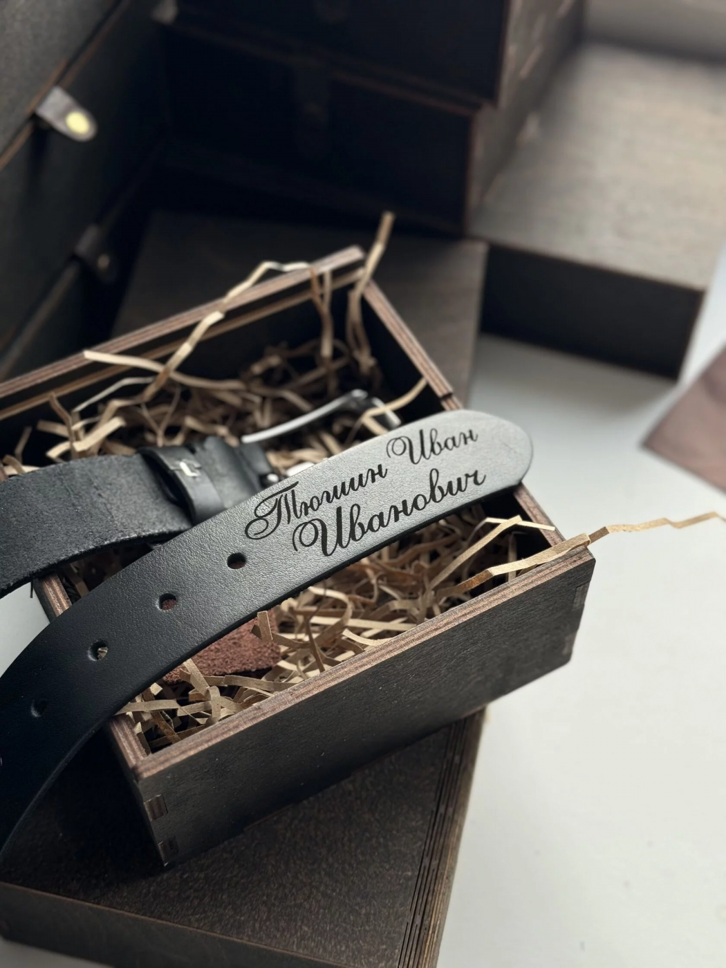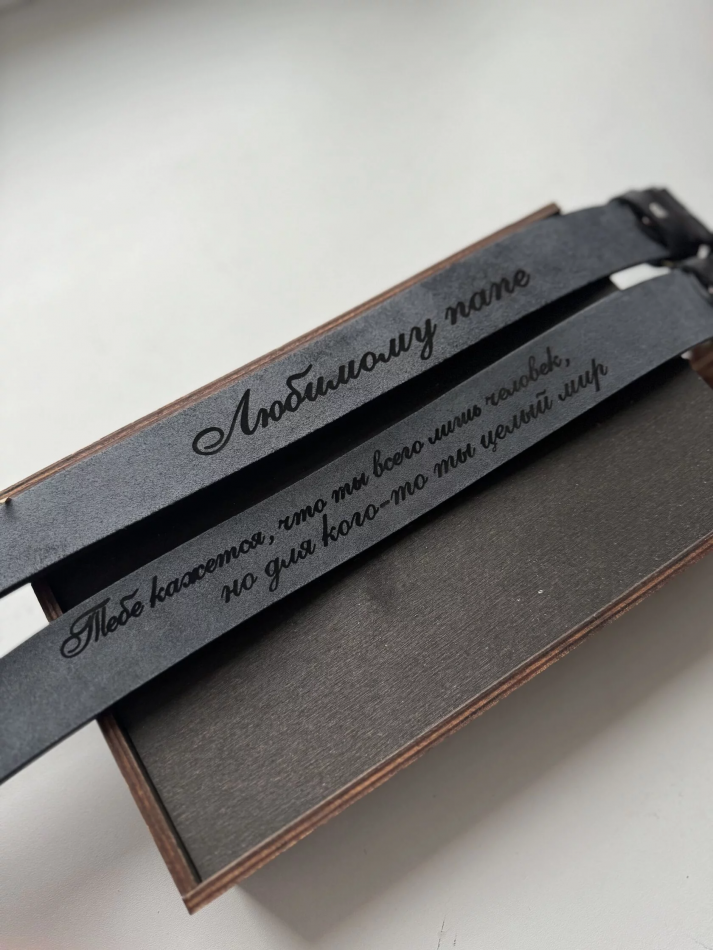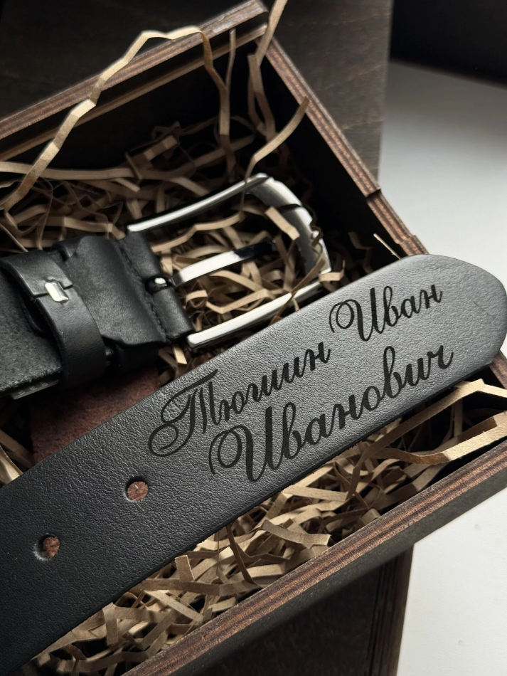 Ремень оснащен красивой и нетускнеющей со временем пряжкой, может быть разной длины и упаковывается в оригинальную подарочную коробочку.