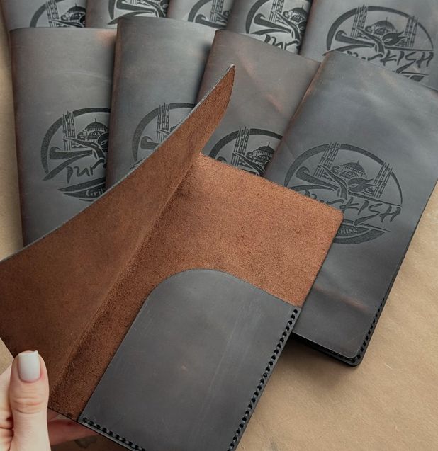 Лаконичные кожаные аксессуары с гравировкой. Уместный подарок для мероприятий и коллег, подчёркивающий внимание к деталям.